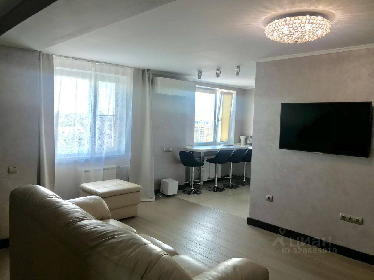 Качественный евроремонт в нейтральной современной палитре; можно заехать и жить без дополнительных вложений.