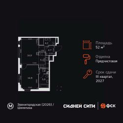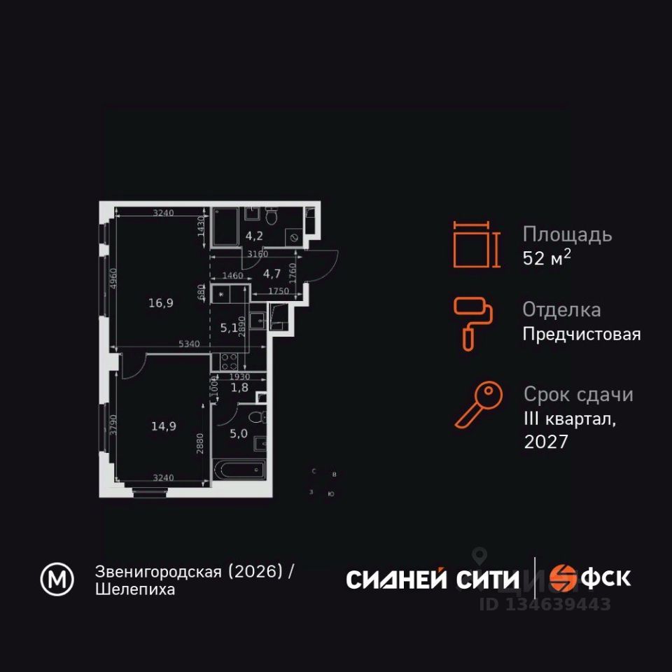 Продаётся 2-к квартира номер 167 общей площадью 52.6 кв.м. на 22-м этаже 28 этажного здания. Предчистовая отделка. Цена с учётом скидки.