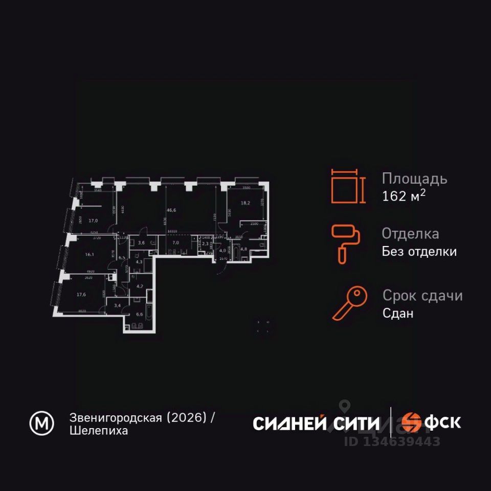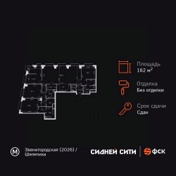 Продаётся 5-к квартира номер 675 общей площадью 162.2 кв.м. на 43-м этаже 43 этажного здания. Без отделки. Цена с учётом скидки.