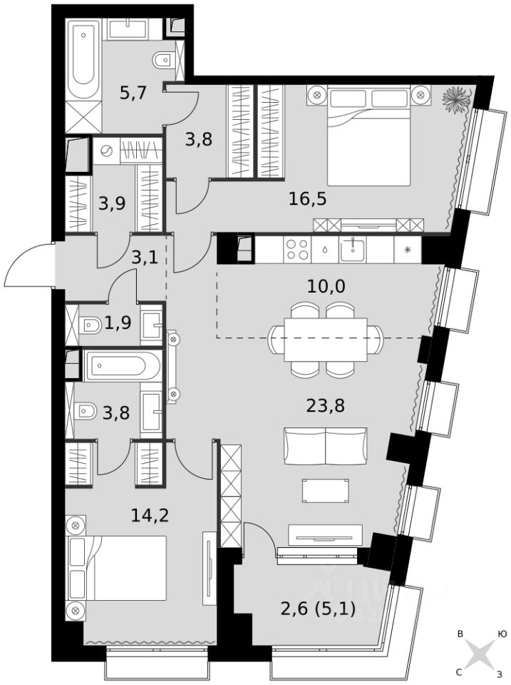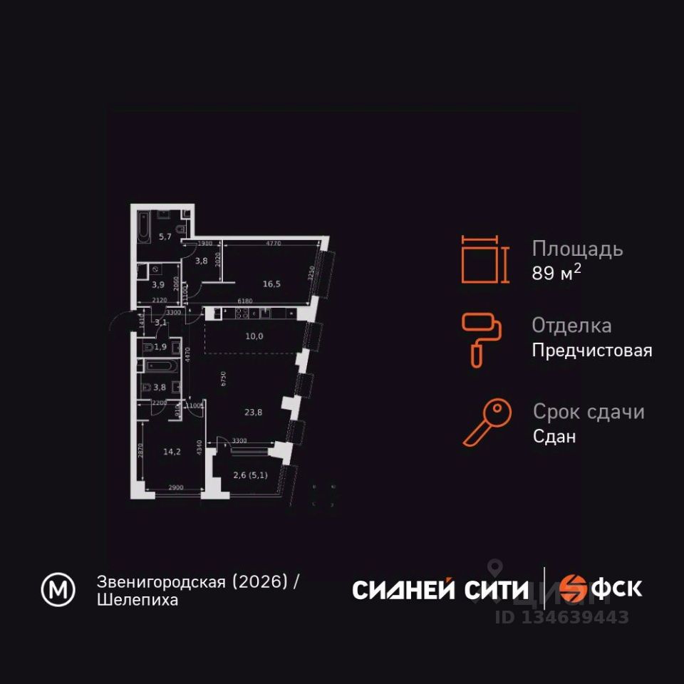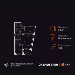 Продаётся 3-к квартира номер 380 общей площадью 89.3 кв.м. на 10-м этаже 43 этажного здания. Предчистовая отделка. Цена с учётом скидки.