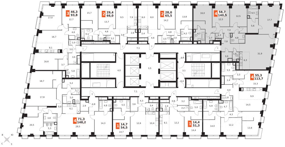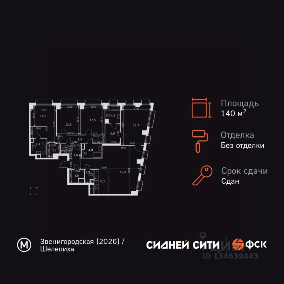 Продаётся 5-к квартира номер 584 общей площадью 140.5 кв.м. на 31-м этаже 43 этажного здания. Без отделки. Цена с учётом скидки.