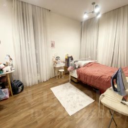 Интерьер выполнен по авторскому дизайн-проекту с использованием качественных материалов и актуальных архитектурных решений. Теплые полы создают дополнительный комфорт, а встроенные системы хранения, включая отдельную гардеробную, обеспечивают функциональность без компромиссов. Квартира полностью укомплектована мебелью и техникой и готова к проживанию без дополнительных вложений.