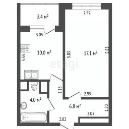 Однокомнатная квартира в новом ЖК "В стремлении к свету". Общая площадь квартиры — 41.4кв. м, жилая — 17.1 кв. м, кухня — 10.2 кв. м. Квартира расположена на 22-м этаже 25-этажного дома. Потолок 2.7 метра.
