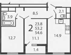 54,6 м²