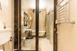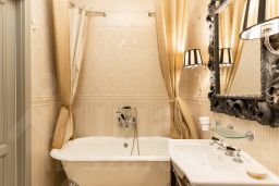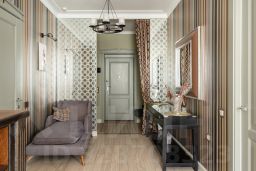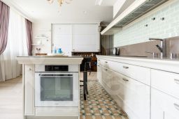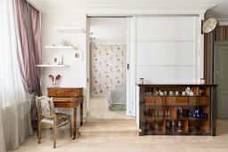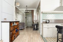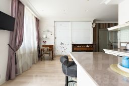 Квартира отличается характером, никакой серой безликости. Планировка продумана до мелочей, большая прихожая с организованными местами хранения, отдельная гардеробная, кухня-гостиная с уютным островом, отдельная спальня. В большой ванной комнате без труда разместилась скрытая постирочная зона (стиральная и сушильная машины), а изюминкой стала отдельно стоящая ванная.