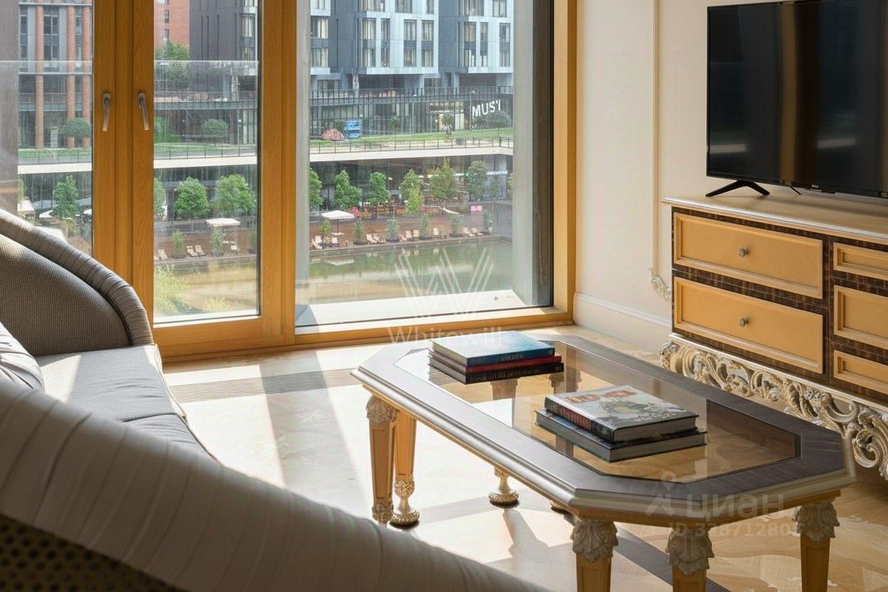 Квартира полностью укомплектована техникой Kuppersbusch и изысканной мебелью Cappellini Intagli. В ванных комнатах и санузлах предусмотрена сантехника брендов Laufen New, Hansgrohe, Timo Saona и Bossini, а эффектные светильники, люстры, торшеры и настенные бра — от брендов OR Illuminazione, Masiero, Italamp, Paralume Marina. Функциональная планировка включает кухню-гостиную с обеденной зоной и лаунжем, мастер-спальню с собственной ванной комнатой, и гардеробной, две спальни, гостевой санузел, постирочную, холл со встроенной системой хранения. Благодаря панорамному остеклению пространство наполнено естественным светом и теплом, открываются прямые виды на пруд и благоустроенный двор.