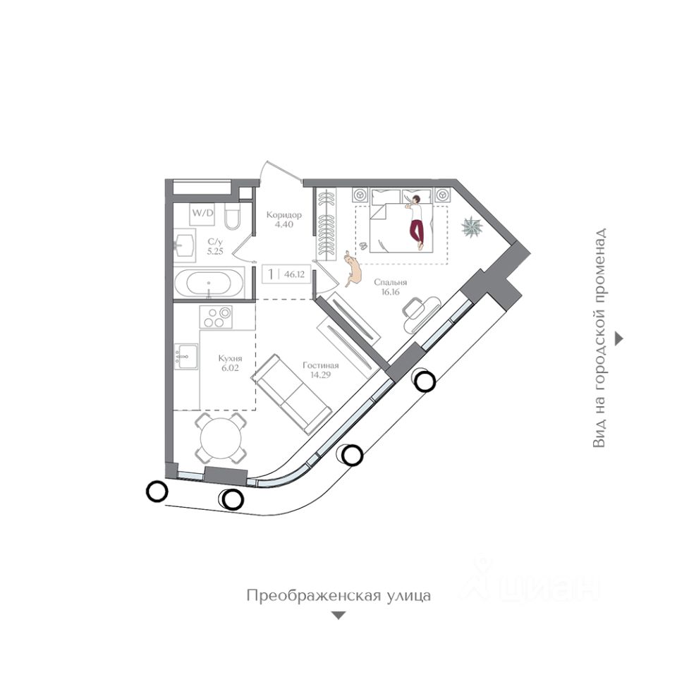 Общая площадь46,12 м²