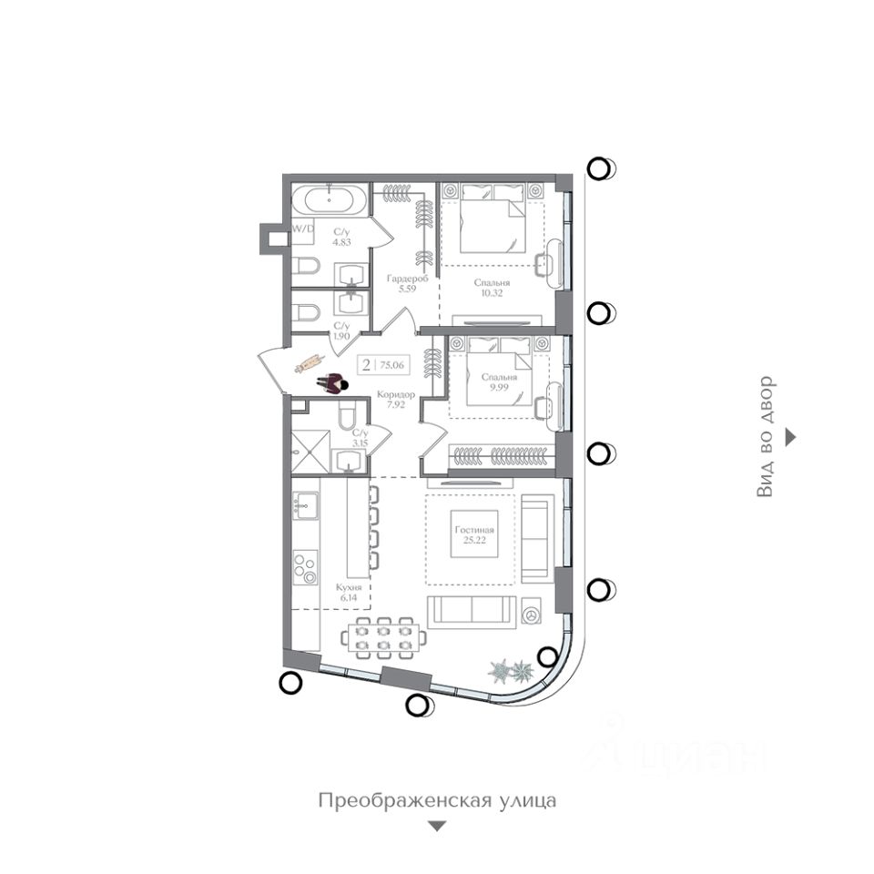 Общая площадь75,06 м²