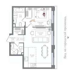 Квартира на 7 этаже в жилом комплексе премиум-класса "Преображенская площадь". Общая площадь: 54.42 кв.м.