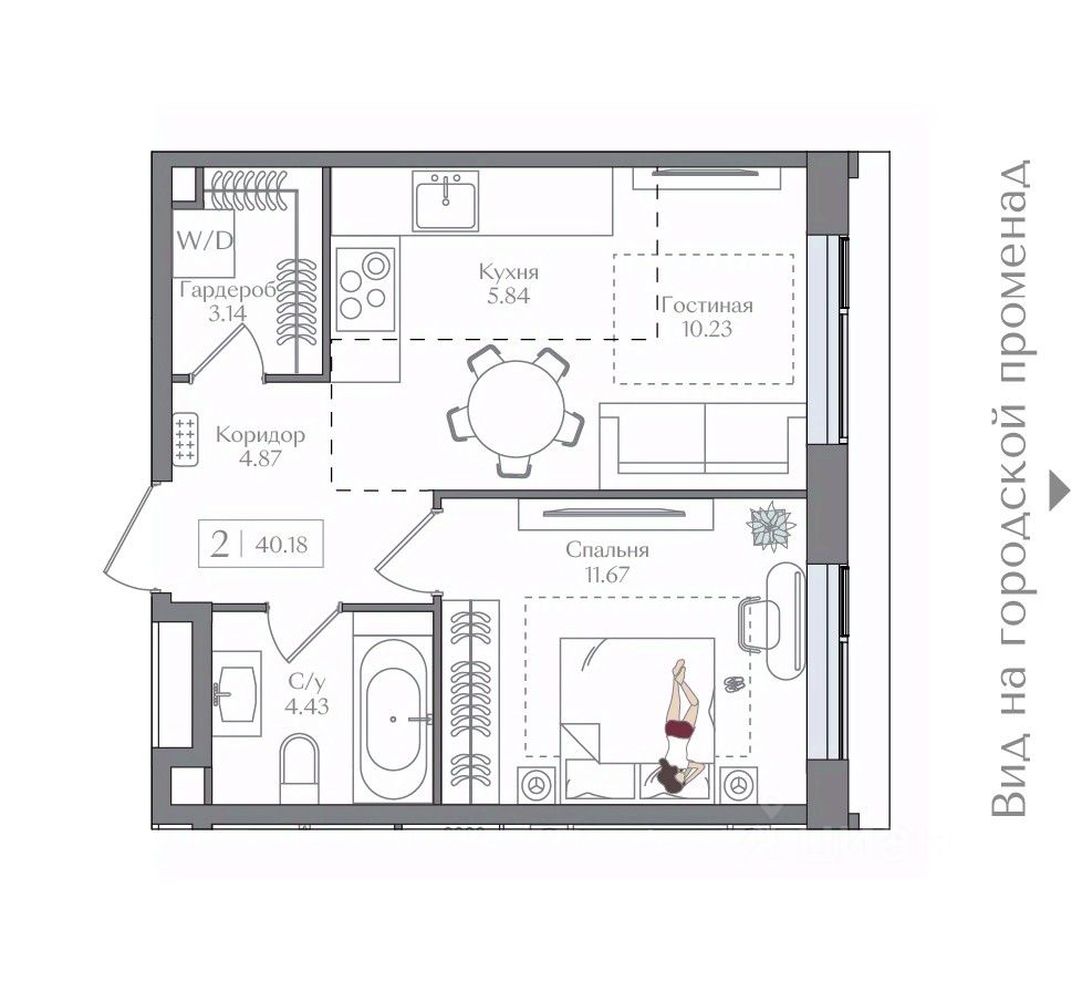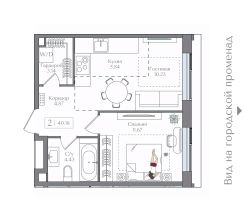 Квартира на 9 этаже в жилом комплексе премиум-класса "Преображенская площадь". Общая площадь: 40.18 кв.м.