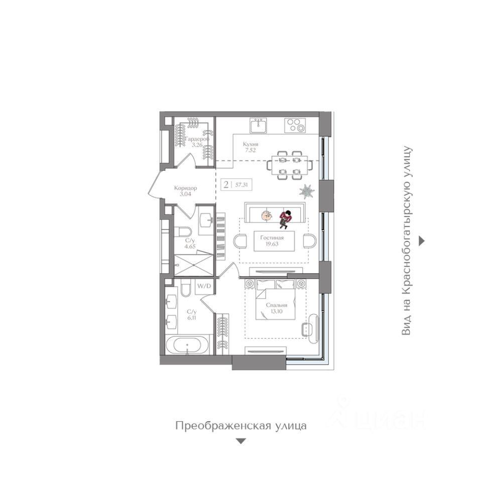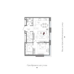 Квартира на 10 этаже в жилом комплексе премиум-класса "Преображенская площадь". Общая площадь: 57.31 кв.м.