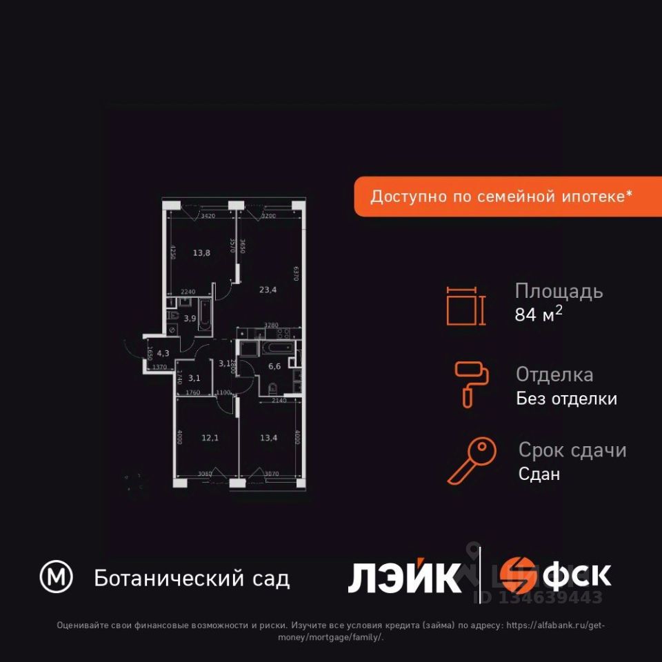 Продаётся 3-к квартира номер 107 общей площадью 84.3 кв.м. на 5-м этаже 10 этажного здания. Без отделки. Цена с учётом скидки.