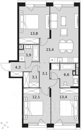 Квартира без отделки. Чистый холст для воплощения интерьера вашей мечты.