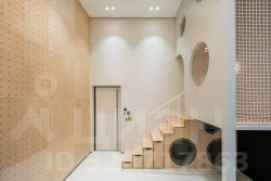 Гранд лобби с 5-метровыми потолками и витражными окнами создаёт атмосферу элегантности. Здесь расположено отдельное помещение с почтовыми ящиками, клубная зона с общими рабочими пространствами и детской комнатой, а также функциональные помещения: колясочная, комната "чистых лапок" и санузел. Все входы - на уровне земли для безбарьерной среды.