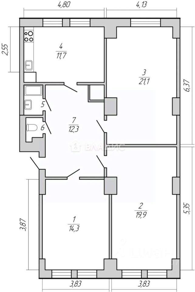 Планировка: 3 отдельные комнаты Кухня изолированная Раздельный санузел (ванная отдельно, туалет отдельно) — это редкость для старого фонда! Помещения сухие, стены ровные, окна выходят во двор.