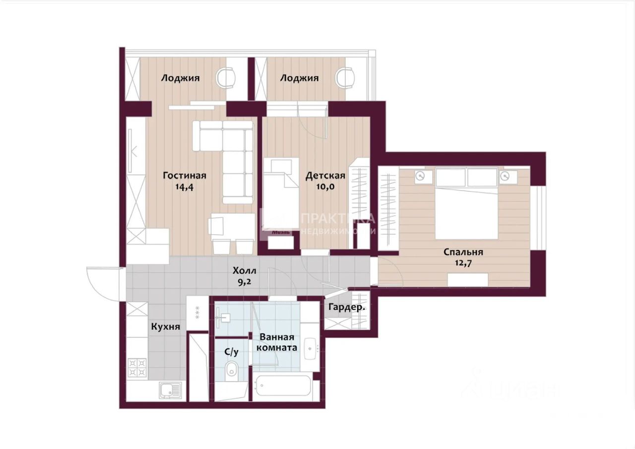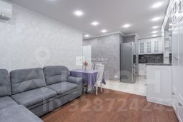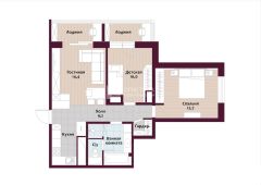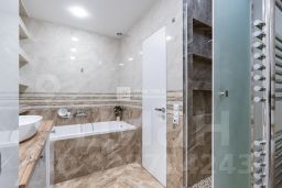 Кухня совмещенная с гостиной зоной, спальня, детская комната, две утепленные лоджии, которые можно и используются как кабинет, гардеробная комната, большой совмещенный санузел с ванной и душевой зоной.