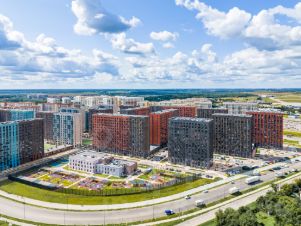 Часть домов уже сдана, на территории открыты две школы и три детских сада, а в будущем будет построена поликлиника, ТЦ, еще одна школа и три детских сада.