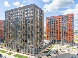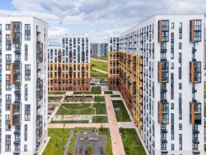 В квартале — монолитные дома комфортной высоты, от 10 этажей. Светлые фасады украшают кирпичные вставки в теплых природных оттенках.
