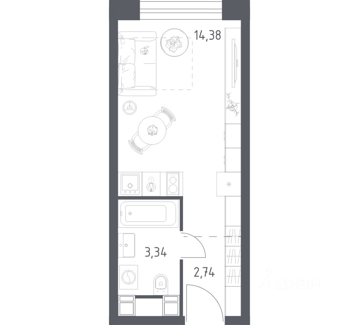 Строим кварталы для жизни с заботой о будущем. Предлагаются студия-апартаменты комфорт-класса площадью 20,46 кв.м в корпусе 1 на 18-м этаже, в жилом комплексе "Пятницкое 58".