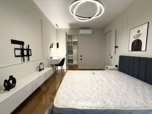 В квартире две изолированные комнаты: в первой комнате вы можете разместить как кабинет, так и детскую спальню, там уже стоит удобный диван. В мастер-спальне еще одна оборудованная гардеробная с окном! Двуспальная кровать с ортопедическим матрасом, туалетный столик с инсталляциями и подсветкой.
