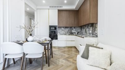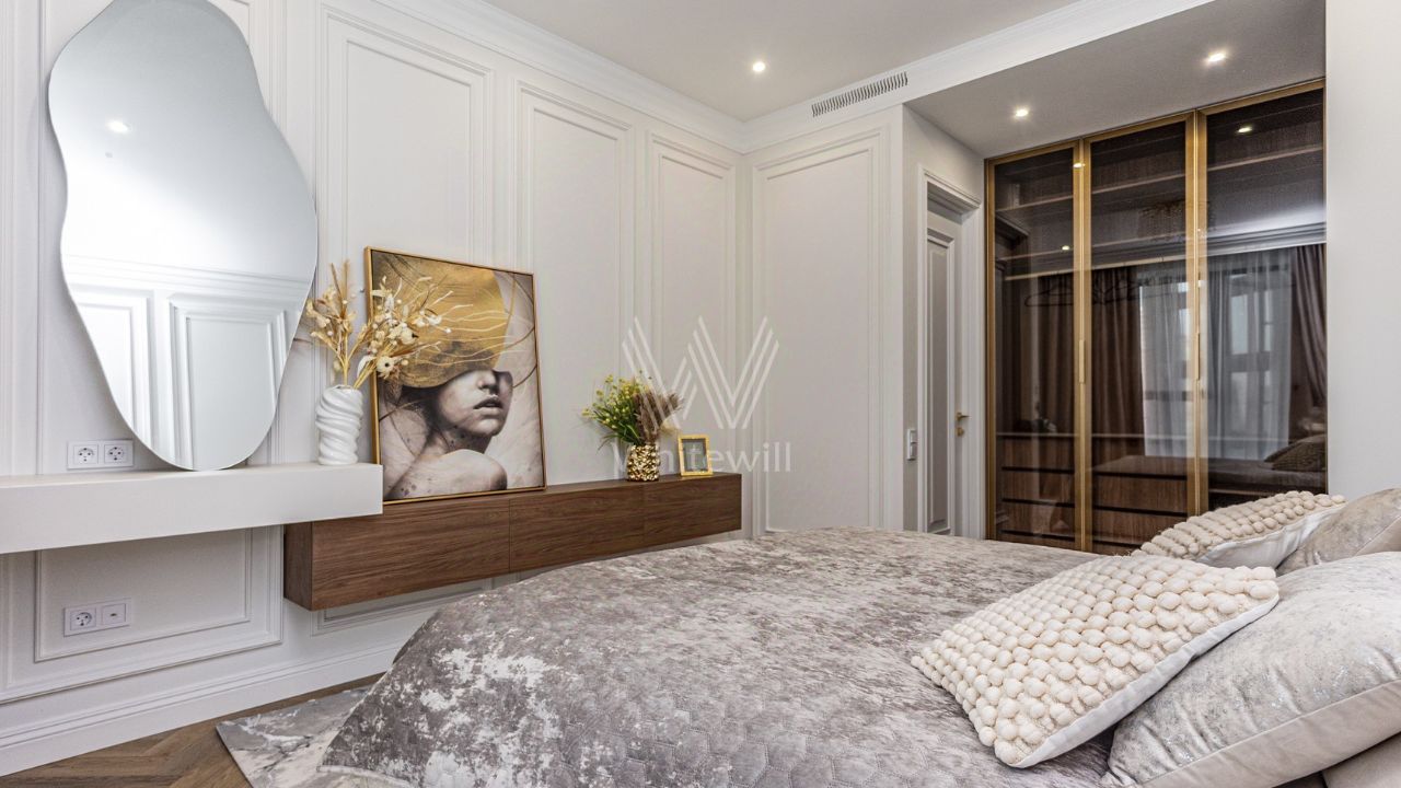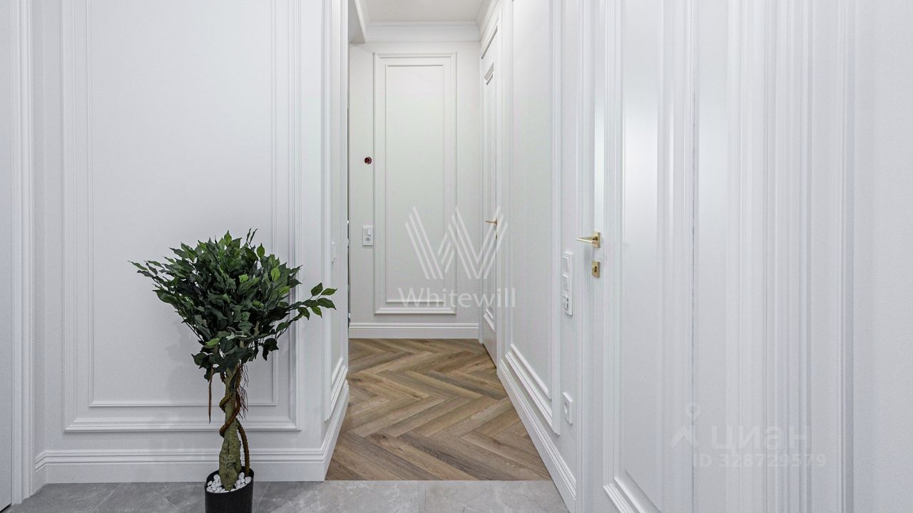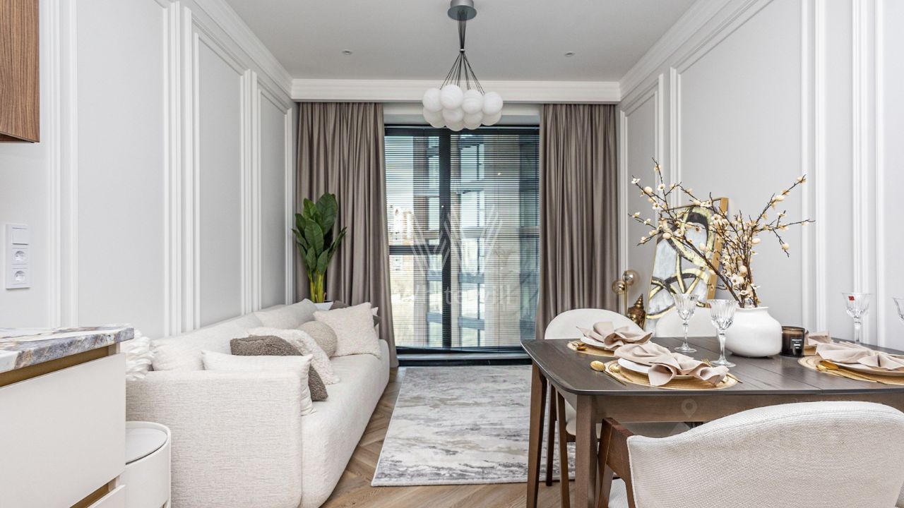 Квартира с 1 спальней площадью 55 м² в комплексе бизнес-класса "Уилл Тауэрс", расположенном в районе Раменки. Отделка в нейтральной цветовой палитре становится универсальным фоном для предметов декора и мебели любого стиля. Пространства наполнены естественным светом благодаря панорамным окнам.