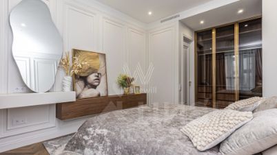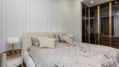 Планировочное решение: уютная кухня-гостиная, спальня со своей гардеробной, санузел с душем и ванной, а также вторая гардеробная. Из окон от пола до потолка открывается живописный вид на город.