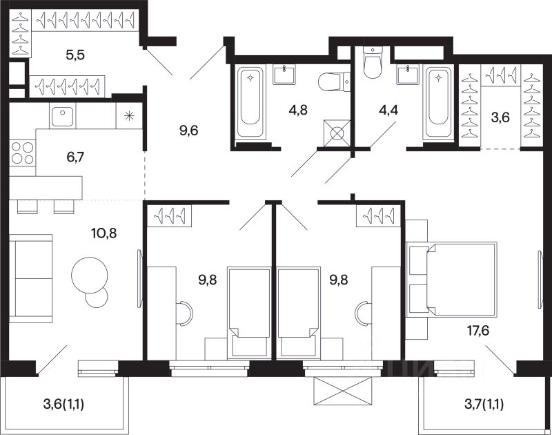 Продаётся 3-комнатная квартира в строящемся доме (з/у 11), срок сдачи: II-кв. 2027, общей площадью 84.8 кв.м., на 4 этаже. Новый жилой комплекс от застройщика "Садовое кольцо" расположен по адресу: Московская область, муниципальный округ Шаховская, посёлок городского типа Шаховская, улица Базаева