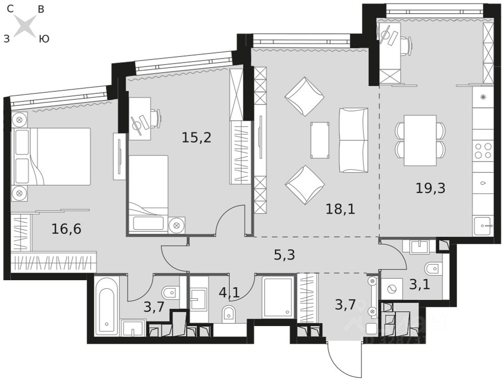 - Евроформат - просторное и удобное жилье с отличной планировкой.