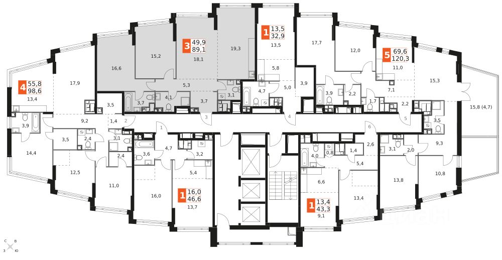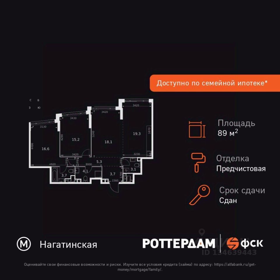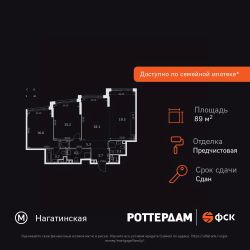 Продаётся 3-к квартира номер 591 общей площадью 89.1 кв.м. на 28-м этаже 29 этажного здания. Предчистовая отделка. Цена с учётом скидки.
