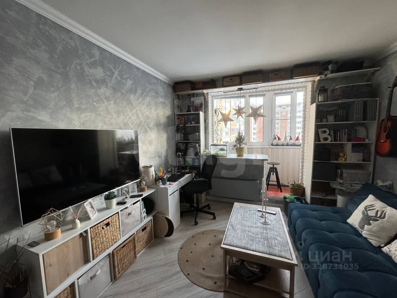 Просторная комната, которую можно разделить на спальную зону и зону гостиной, утепленный балкон с тройными стеклопакетами.
