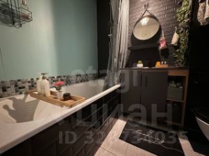 Санузел отделан керамической плиткой и пластиковыми панелями, установлена широкоформатная раковина и дополнительные системы хранения.