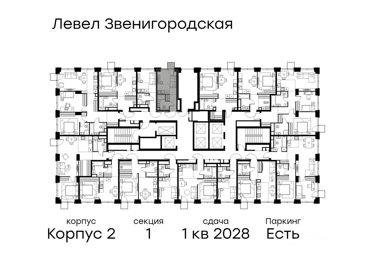 В жилом квартале продаётся студия площадью 19.10 кв.м без отделки. Квартира расположена на 17 этаже 64 этажного корпуса 2 в жилом комплексе комфорт класса Левел Звенигородская (компания Level Group/Левел групп).