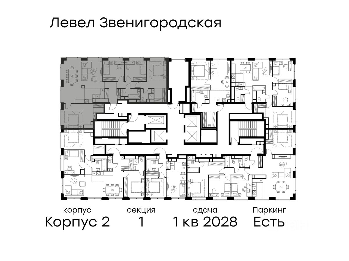 В жилом квартале продаётся многокомнатная квартира площадью 119.30 кв.м без отделки. Квартира расположена на 63 этаже 64 этажного корпуса 2 в жилом комплексе комфорт класса Левел Звенигородская (компания Level Group/Левел групп).