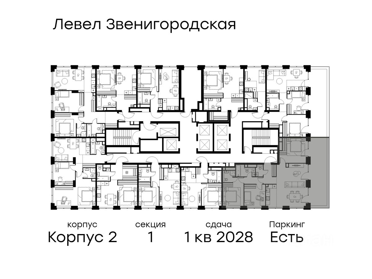 В жилом квартале продаётся 4-комнатная квартира площадью 99.50 кв.м без отделки. Квартира расположена на 22 этаже 64 этажного корпуса 2 в жилом комплексе комфорт класса Левел Звенигородская (компания Level Group/Левел групп).