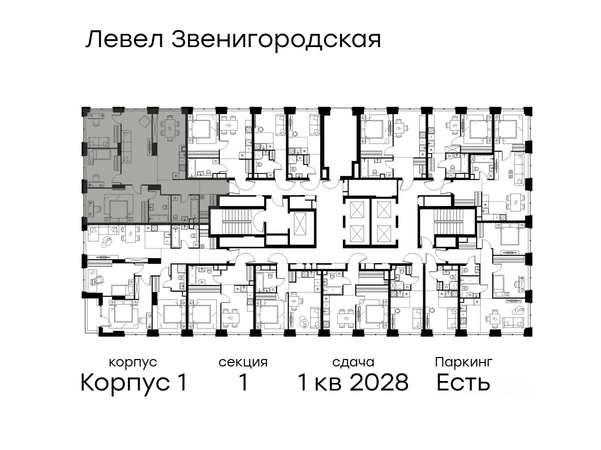 В жилом квартале продаётся 4-комнатная квартира площадью 101.80 кв.м с предчистовой отделкой. Квартира расположена на 3 этаже 48 этажного корпуса 1 в жилом комплексе комфорт класса Левел Звенигородская (компания Level Group/Левел групп).