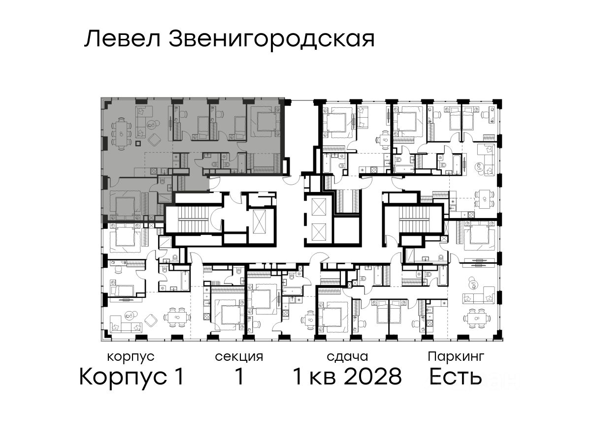 В жилом квартале продаётся многокомнатная квартира площадью 121.70 кв.м с предчистовой отделкой. Квартира расположена на 48 этаже 48 этажного корпуса 1 в жилом комплексе комфорт класса Левел Звенигородская (компания Level Group/Левел групп).
