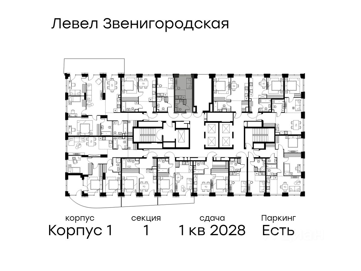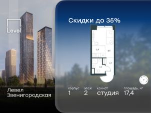 В жилом квартале продаётся студия площадью 17.40 кв.м с предчистовой отделкой. Квартира расположена на 2 этаже 48 этажного корпуса 1 в жилом комплексе комфорт класса Левел Звенигородская (компания Level Group/Левел групп).