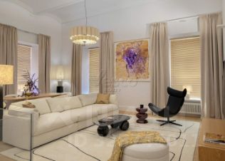 Все картины и панно в интерьере - являются экспонатами галереи современного искусства и могут быть выкуплены будущим собственником или заменены на арт-объекты из собственной коллекции.