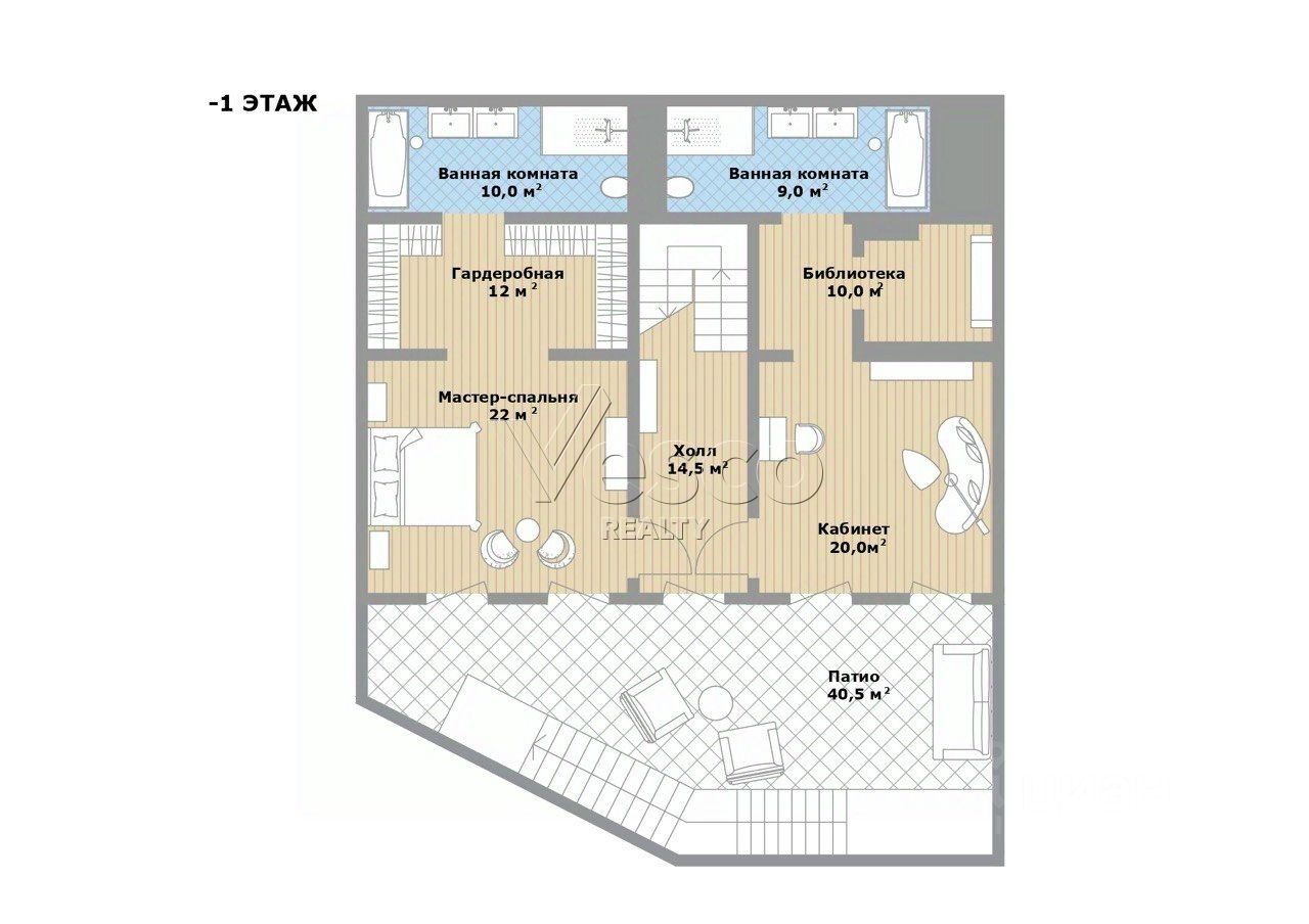Патио (40.5), лестничный холл (14.5).