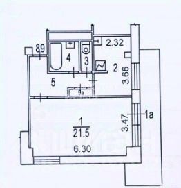 1) Одна большая КУХНЯ-ГОСТИНАЯ студийного типа общей площадью 20 м2 с отдельным входом, окном в кухонной зоне и балконным блоком в зоне гостиной.