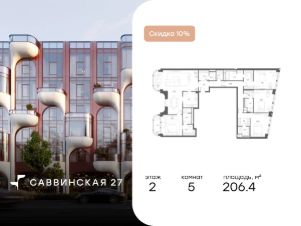 В историческом районе Хамовники продаются 5-к апартаменты площадью 206.40 кв.м, расположенные на 2 этаже делюкс-резиденции Саввинская 27.