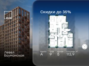 В Басманном районе (ЦАО) продается 5-комнатная квартира площадью 113.90 кв.м без отделки. Квартира расположена на 9 этаже 9-этажного корпуса " A" в жилом комплексе бизнес-класса Левел Бауманская (компания Level Group).