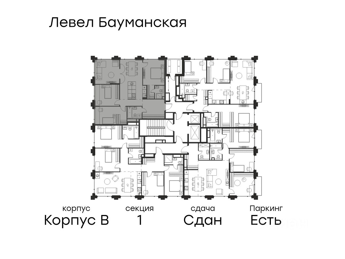 В Басманном районе (ЦАО) продается 4-комнатная квартира площадью 94.60 кв.м без отделки. Квартира расположена на 17 этаже 17-этажного корпуса " B" в жилом комплексе бизнес-класса Левел Бауманская (компания Level Group).
