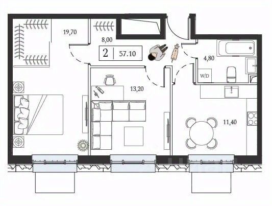Продается 2-комн. квартира, площадью 57.1 м2 м. Технопарк. Возможен вариант покупки с использованием ипотечных средств.
