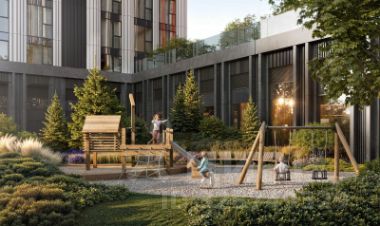 Для создания благоустройства было приглашено 2 ведущих бюро - ADM и GAFA. Разноуровневое пространство вмещает в себя игровые площадки для детей всех возрастов, тропы здоровья для пеших прогулок, крытые аллеи с качелями, места для работы на свежем воздухе, многофункциональные спортивные площадки - зоны уличных тренировок, столы для пинг-понга, зоны командных игр. Общая площадь закрытого двора - 4,63 га.