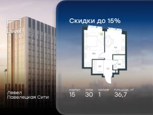 В Даниловском районе столицы (ЮАО) продаётся 1-комнатная квартира площадью 36.70 кв.м c предчистовой отделкой. Квартира расположена на 30 этаже 45-этажного корпуса 15 в жилом комплексе бизнес-класса Левел Павелецкая Сити. Высота потолков 3.00м.