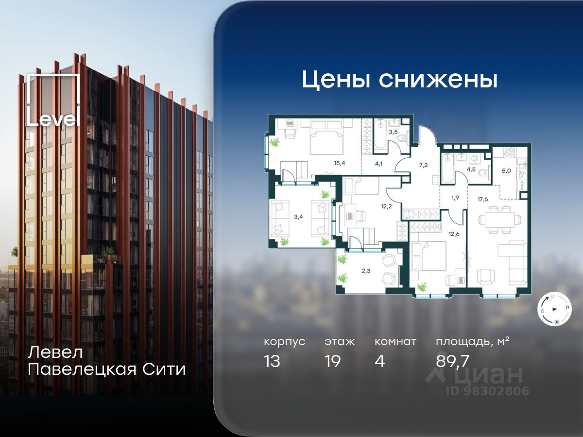 В Даниловском районе столицы (ЮАО) продаётся 4-комнатная квартира площадью 89.70 кв.м без отделки. Квартира расположена на 19 этаже 20-этажного корпуса 13 в жилом комплексе бизнес-класса Левел Павелецкая Сити. Высота потолков 3.00м.