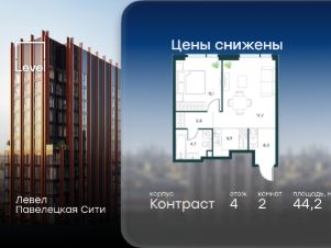 В Даниловском районе столицы (ЮАО) продаётся 2-комнатная квартира площадью 44.20 кв.м без отделки. Квартира расположена на 4 этаже 27-этажного корпуса 14 в жилом комплексе бизнес-класса Левел Павелецкая Сити. Высота потолков 3.00м.