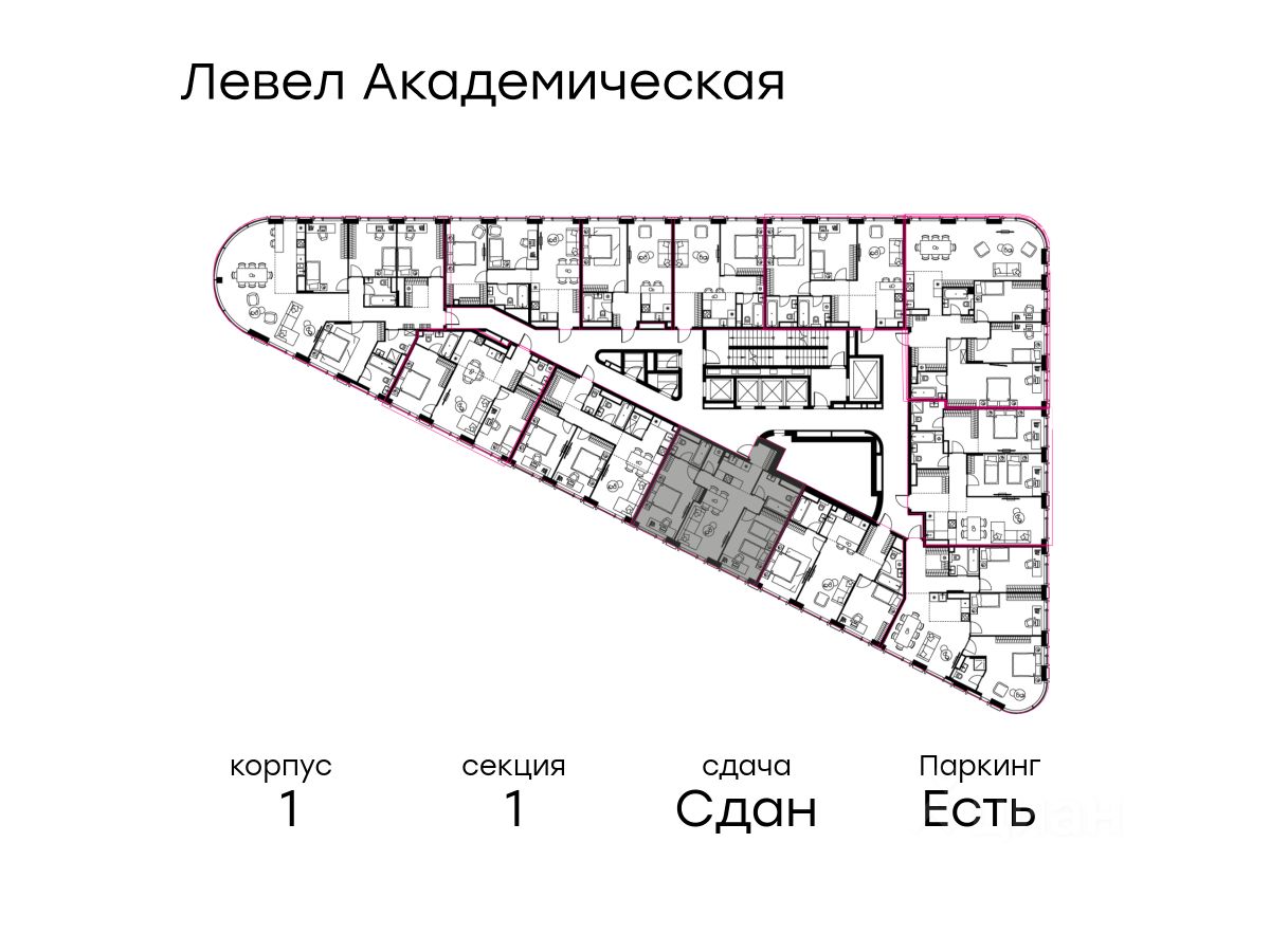 В Академическом районе продаётся 3-комнатная квартира площадью 71.30 кв.м без отделки. Квартира расположена на 19-м этаже 19-этажного жилого комплекса бизнес-класса Левел Академическая (компания Level Group).