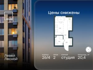 В районе, утопающем в густой зелени лесов, многочисленных парков и скверов, продаётся студия площадью 20.40 кв.м с предчистовой отделкой. Квартира расположена на 2 этаже в жилом комплексе комфорт-класса Левел Лесной (компания Level Group/Левел групп).